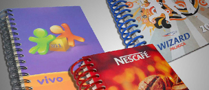 Cadernos personalizados, em papel reciclado ou off-set. Vários formatos.